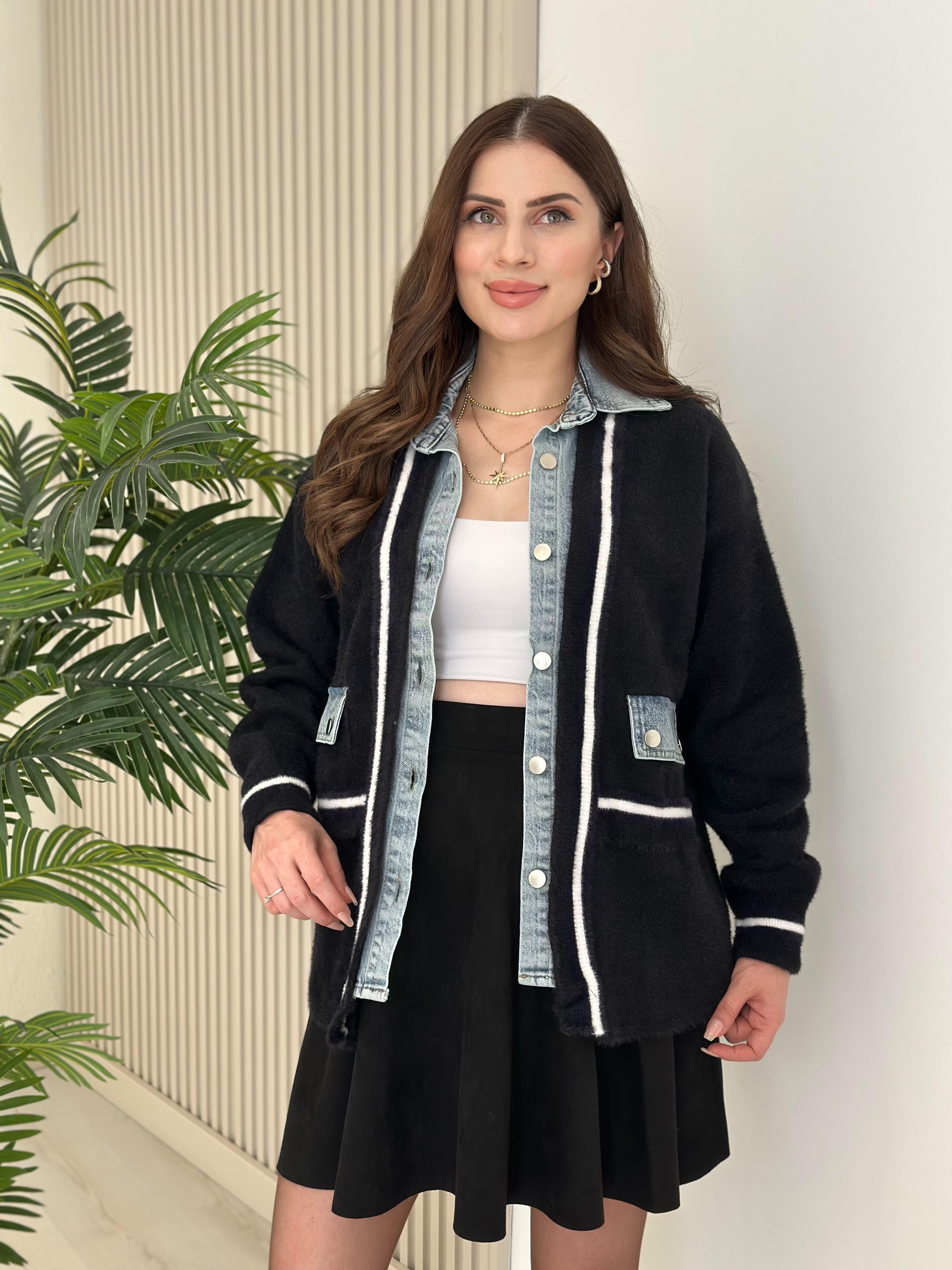 Angora Denim Miksli Tasarım Hırka Siyah