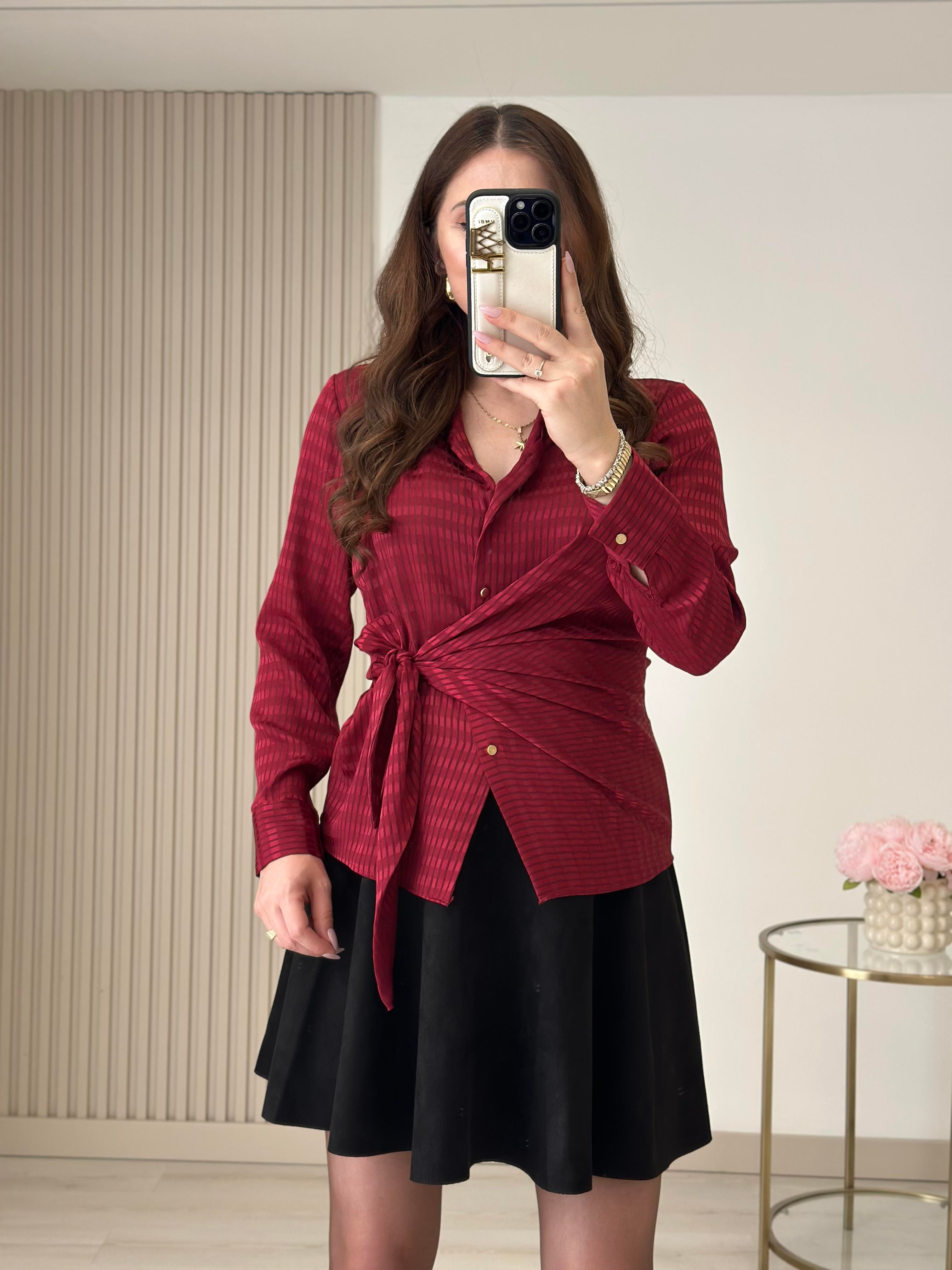 Beli Bağlama Detaylı Gold Düğmeli Gömlek Bordo
