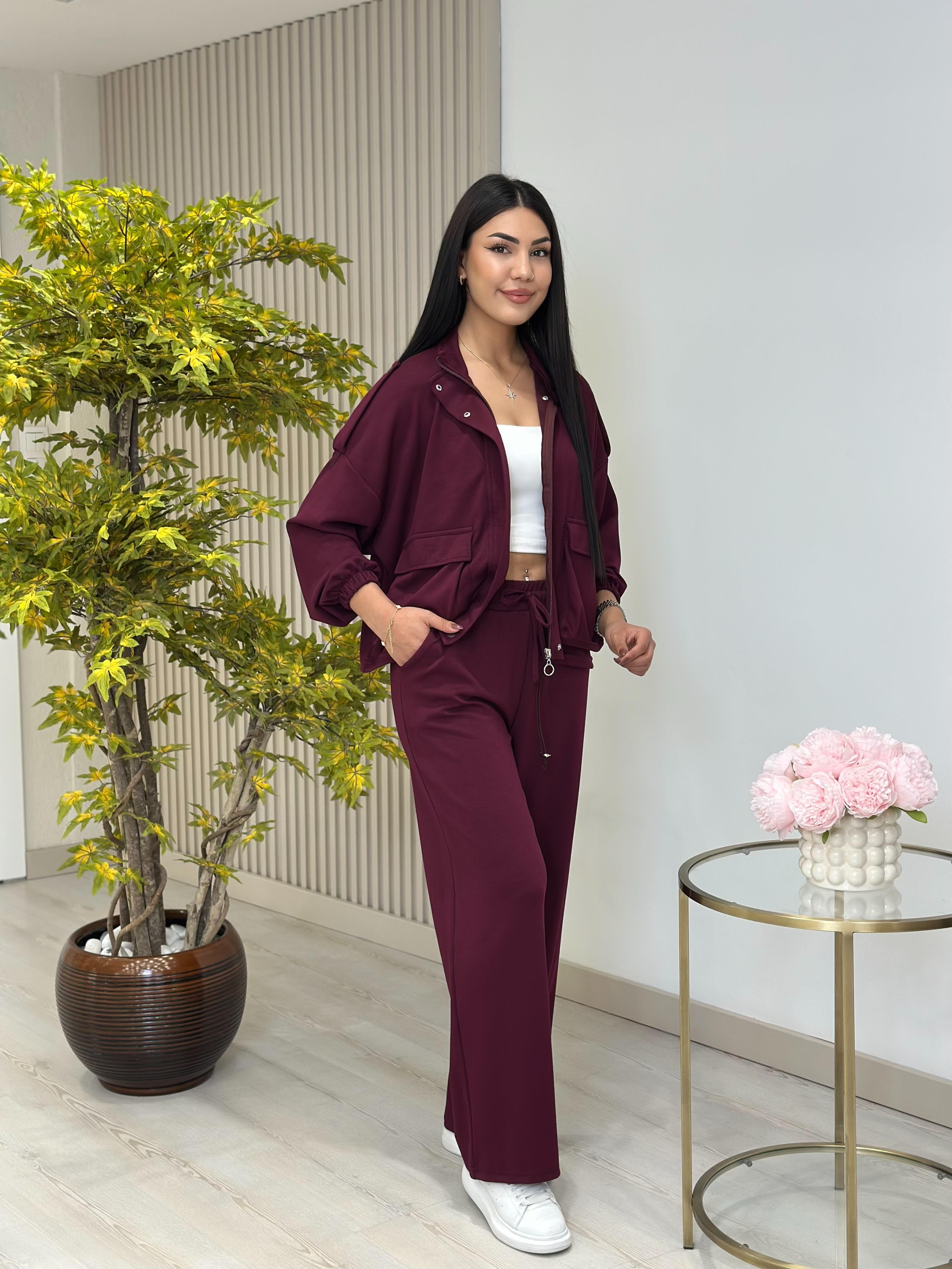 Cepli Ceketli Modal Kumaş Eşofman Takımı Mürdüm