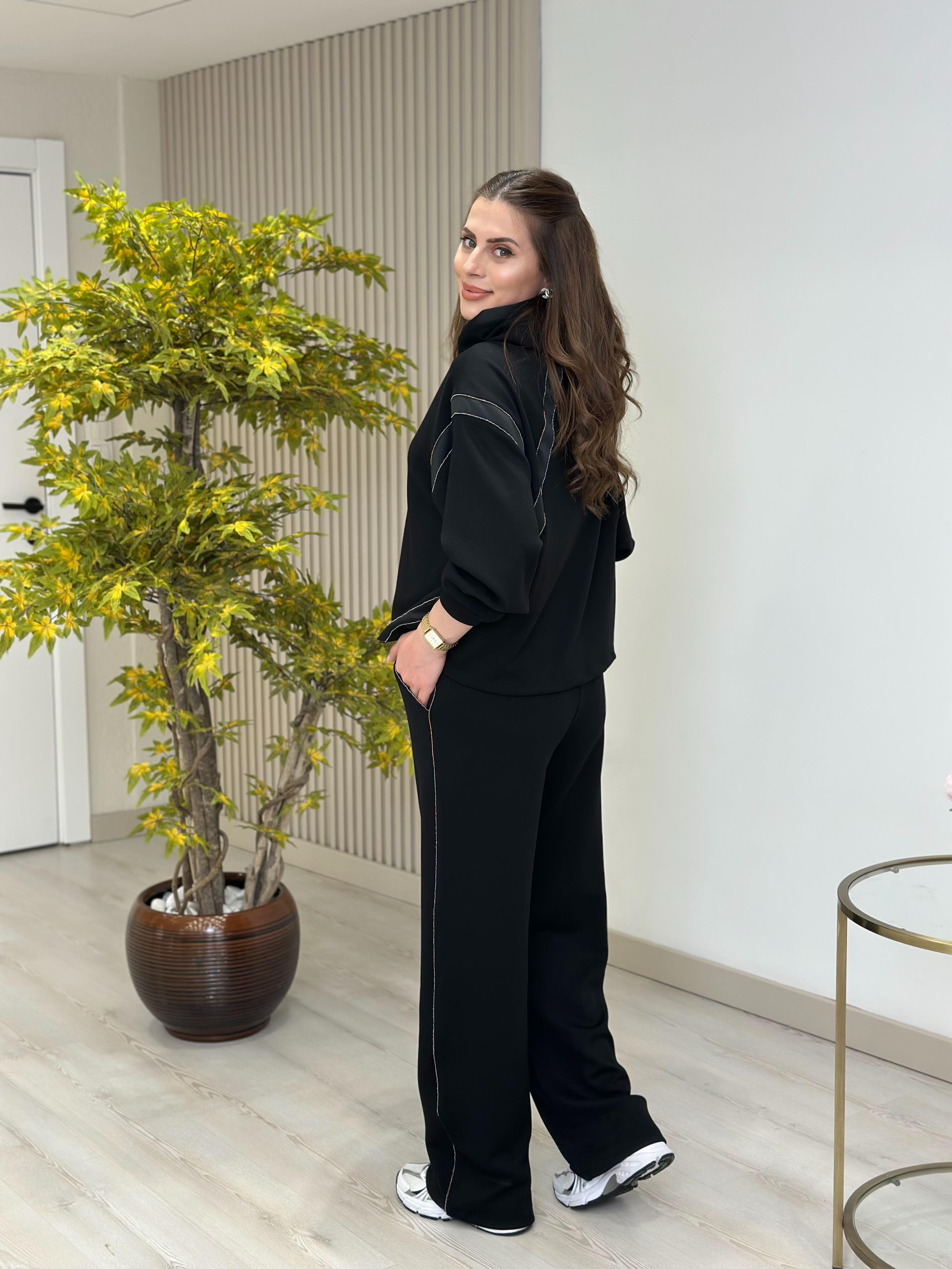 Kapşonlu Taş Detaylı Saten Biyeli Premium Modal Takım Siyah