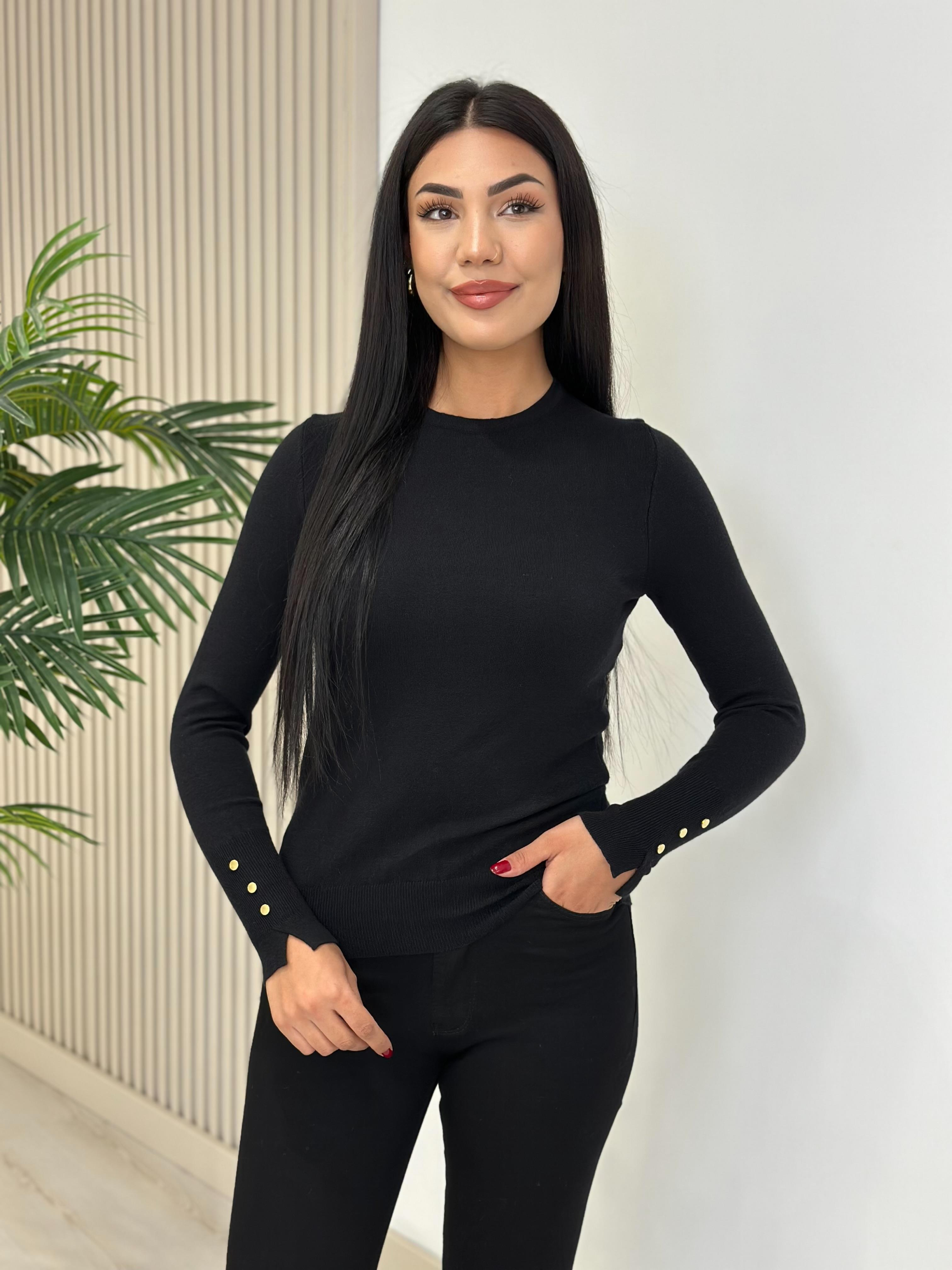 Kolları Gold Zımbalı Kaşmir Dokulu Triko Siyah