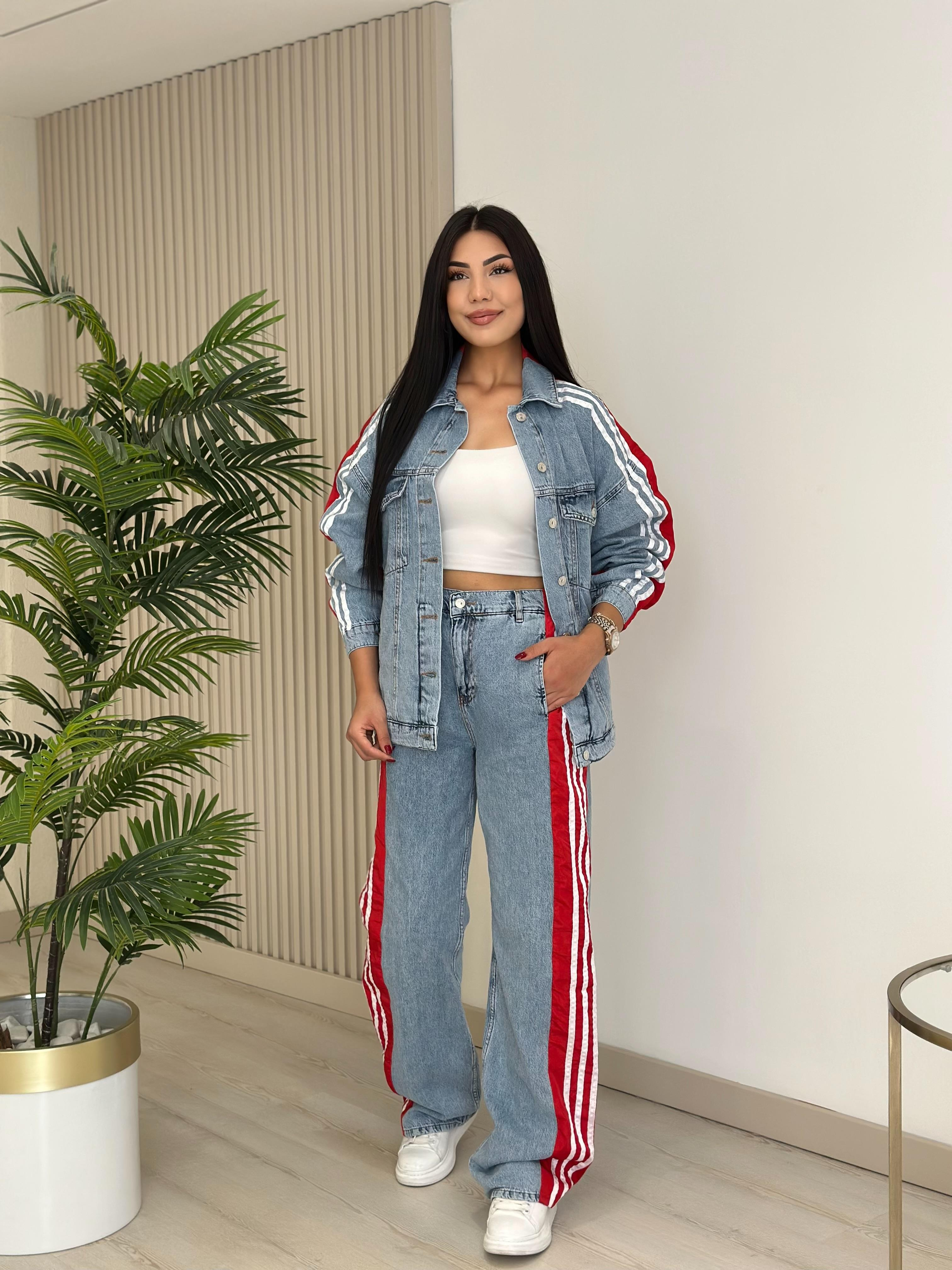 Paraşüt Detaylı Tasarım Jean Takım Kırmızı