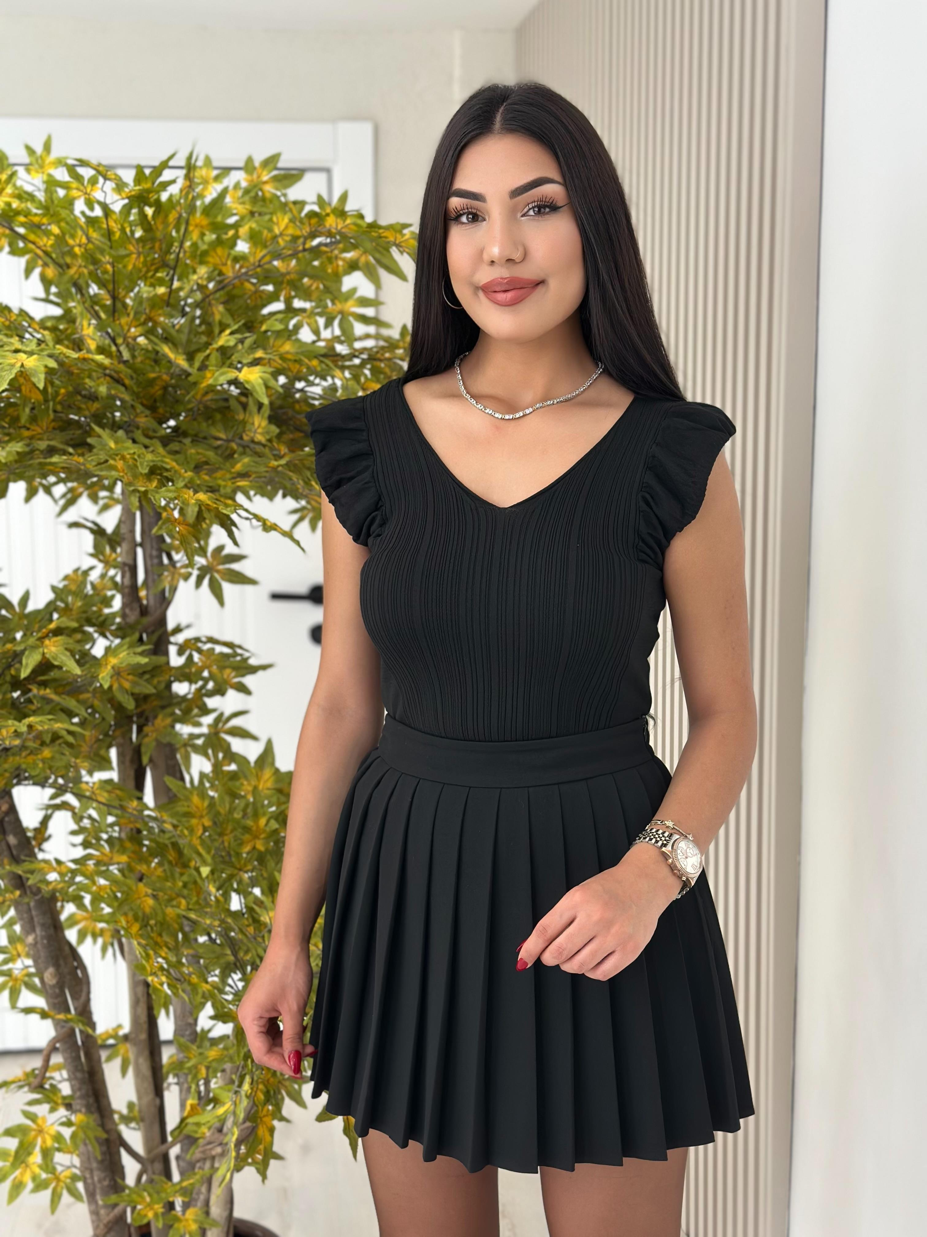 V Yaka Fitilli Merserize Atlet Siyah