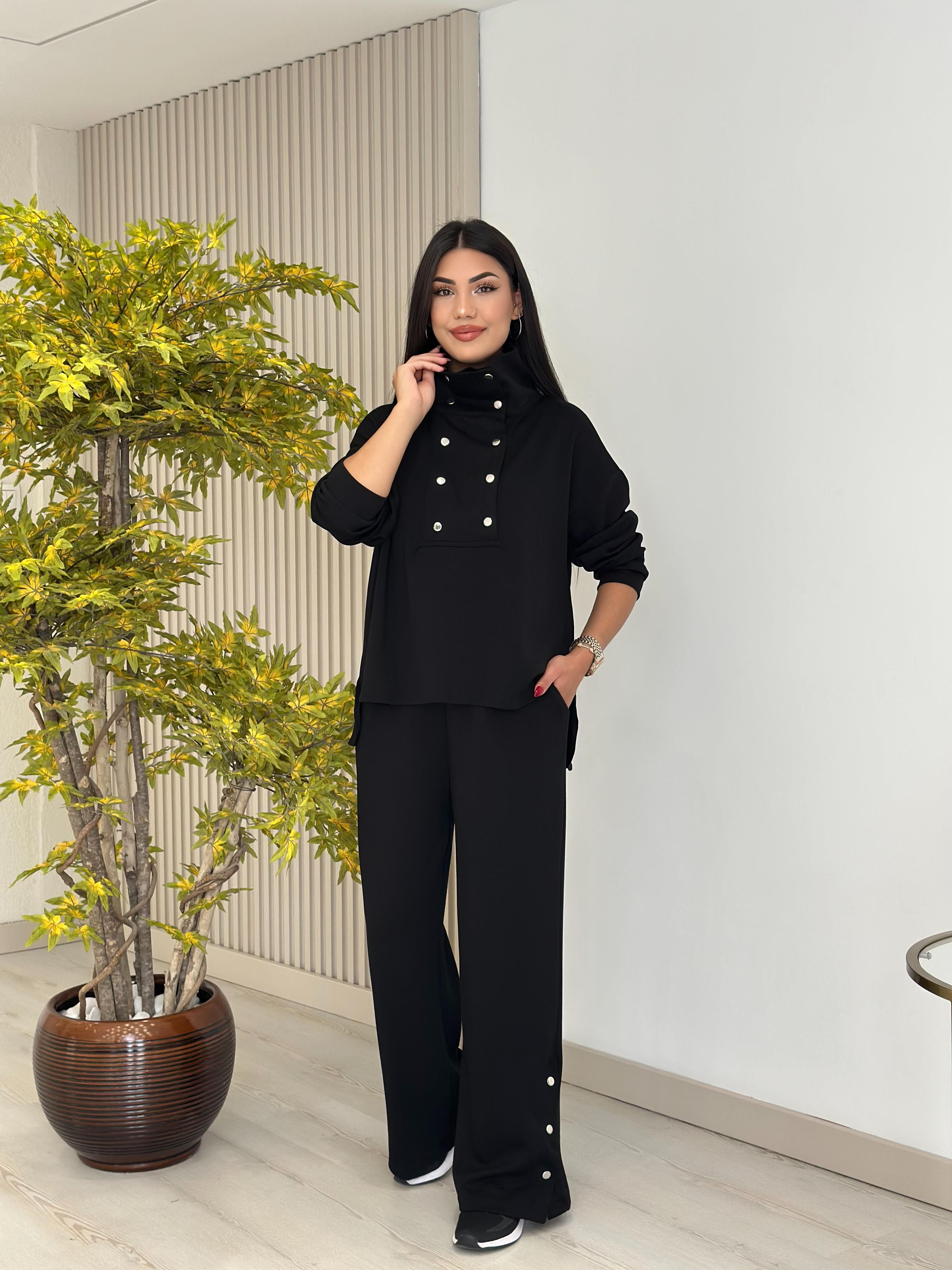 Yakası Çıtçıt Detaylı Modal Takım Siyah