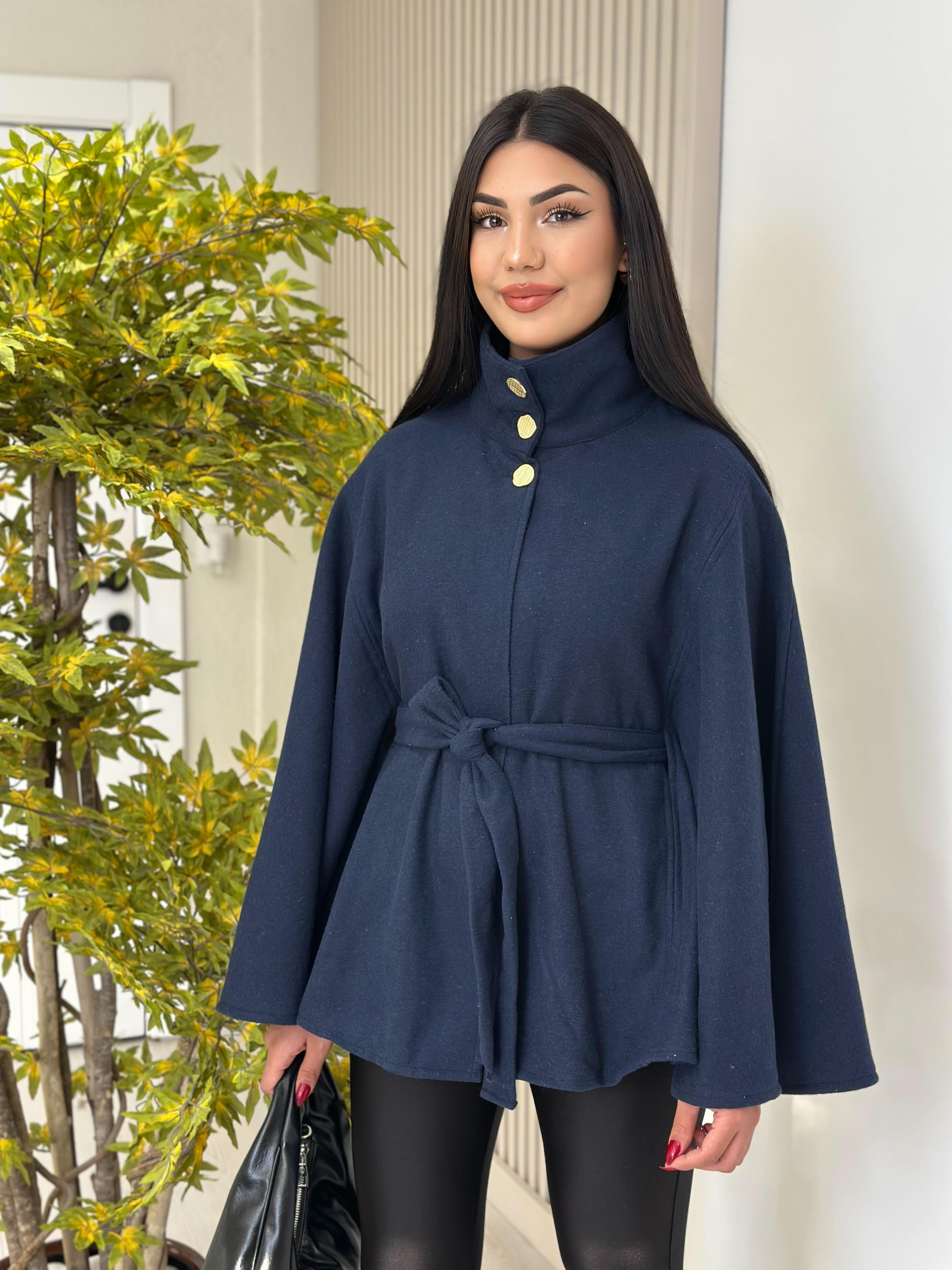 Yakası Gold Düğmeli Kaşe Panço Lacivert